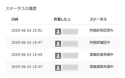 その後、通知を受けた財務部担当者が最終承認を実施する。